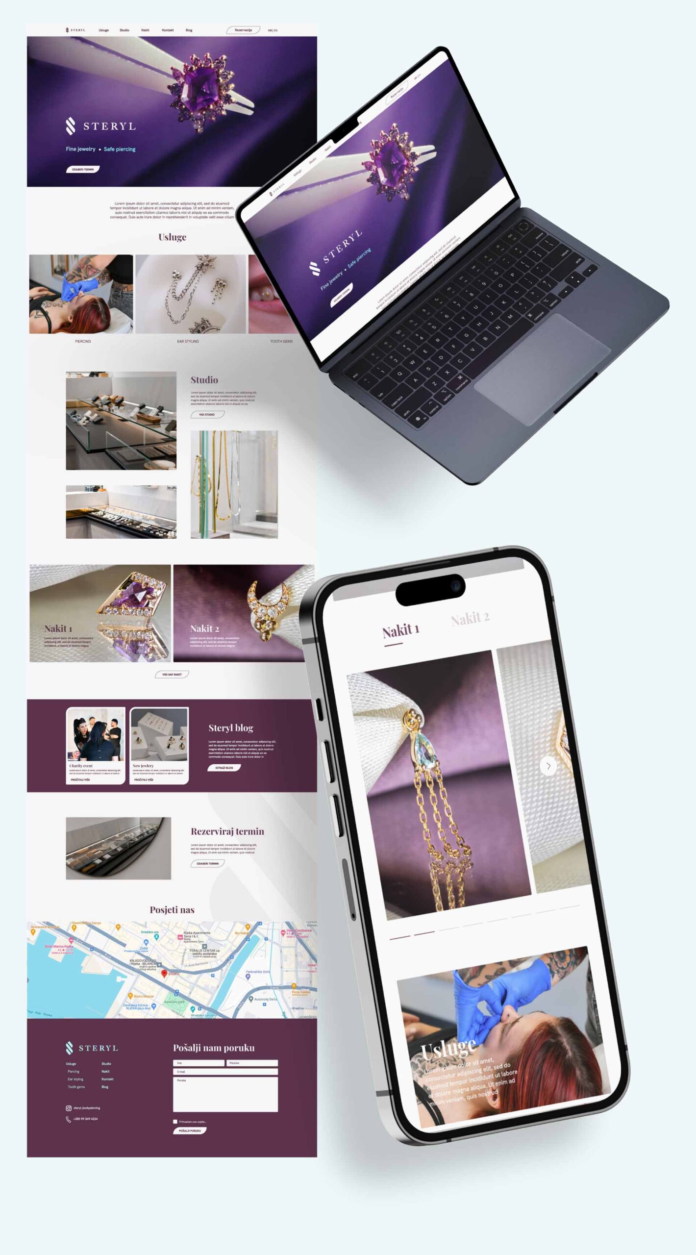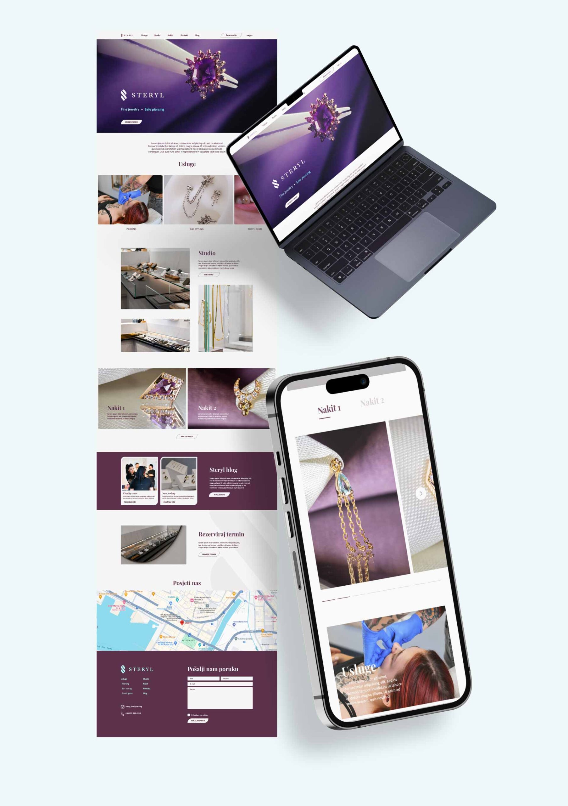 The logo, inspired by the baguette cut, creates a clear link between their focus on fine jewelry and piercing, highlighting jewelry as one of the key elements of their brand.